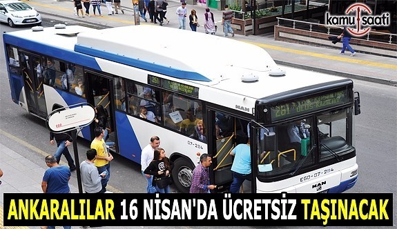 Ankara Büyükşehir Belediyesi, 16 Nisan Pazar günü yapılacak referandum oylamasında, vatandaşların ve sandık görevlilerinin intikallerinin kolaylaştırılması amacıyla, 2935 Sayılı Olağanüstü Hal Kanunu’nun 9/J ve 11. Maddeleri gereğince, toplu taşım araçlarının ücretsiz olarak hizmet vermesini kararlaştırdı.