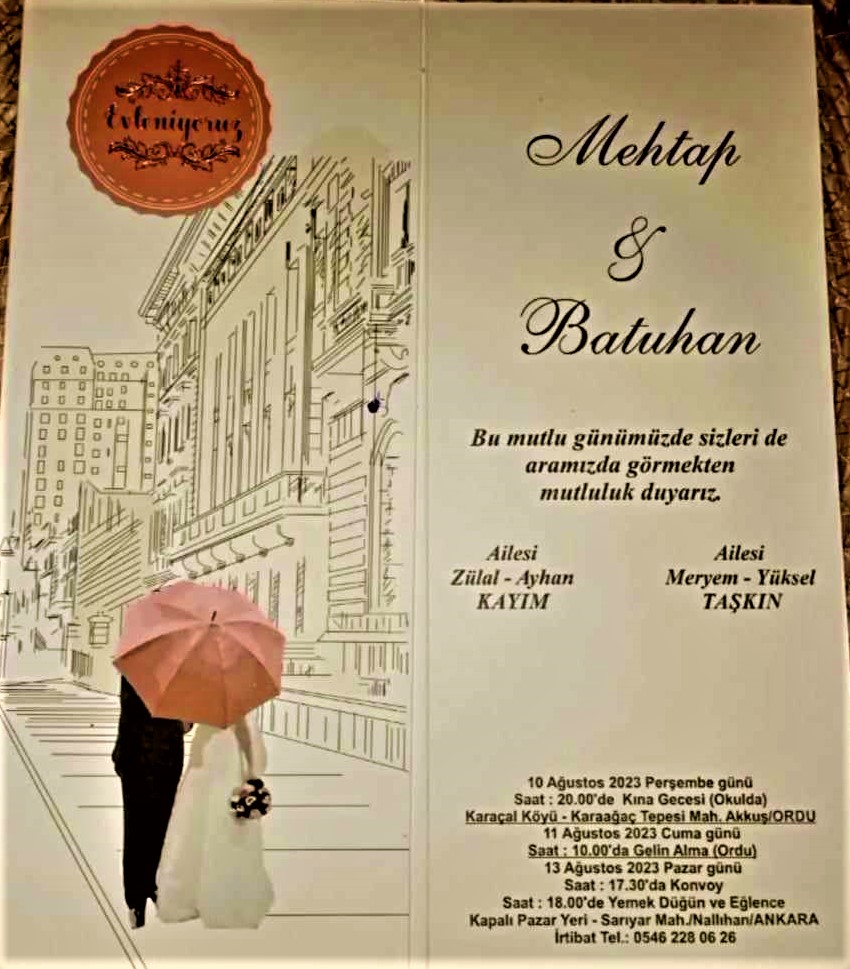 Sarıyar'ımız sevilenlerinden Meryem-Yüksel Taşkın çiftinin oğlu Batuhan Taşkın ile Mehtap Kayım'ın 13 Ağustos 2023 Pazar günü saat 19.00'da Sarıyar'ımız Kapalı Pazar yerinde düğünleri vardır.Düğün törenine Eş dost Akraba Herkes davetlidir.Allah Mesut Etsin.Gençlerimizi ömür boyu mutluluklar dileriz.29 Temmuz 2023