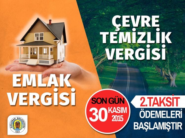Ev sahiplerinin yükümlülüğündeki 2015 emlak vergisi 2. taksit ödemeleri başladı ve 30 Kasım’da sona eriyor.