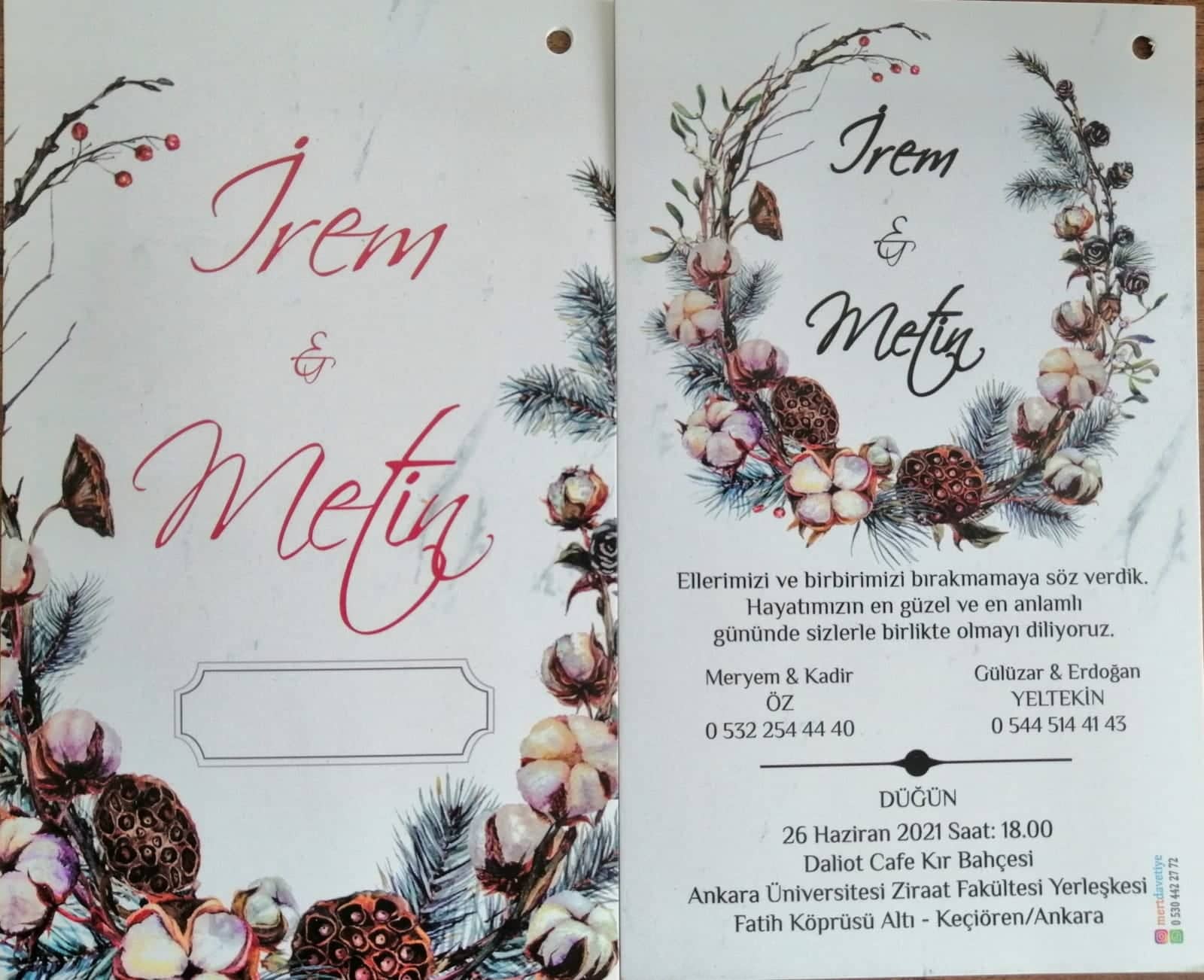 Sarıyar'ımız sevilenlerinden Çetin Özkan'ın kardeşi, Meryem-Kadir Öz çiftinin sevgili kızları İrem Öz ile Metin Yeltekin'in düğünü