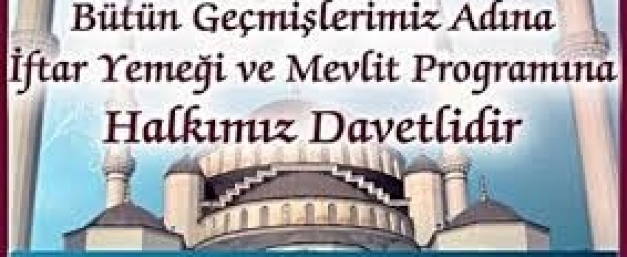Sarıyar'ımız sevilenlerinden Merkez Cami Dernek Başkanımız Şahin AYHAN 23 Haziran 2017 Cuma günü Cuma namazı öncesinde tüm gelmiş geçmiş mevtalarımızın, ebelerimizin dedelerimizin, analarımızın babalarımızın ruhları için mevlid-i şerif okutulmasına, aynı gün yine gelmiş geçmişlerimizin ruhları için akşamı Kapalı Pazar yerinde iftar yemeği verecektir.Ayhan okutacağımız mevlidimize ve vereceğimiz iftar yemeğine teşrif etmelerinizi rica ediyoruz. Saygı ve sevgilerimizle.21 Haziran 2017