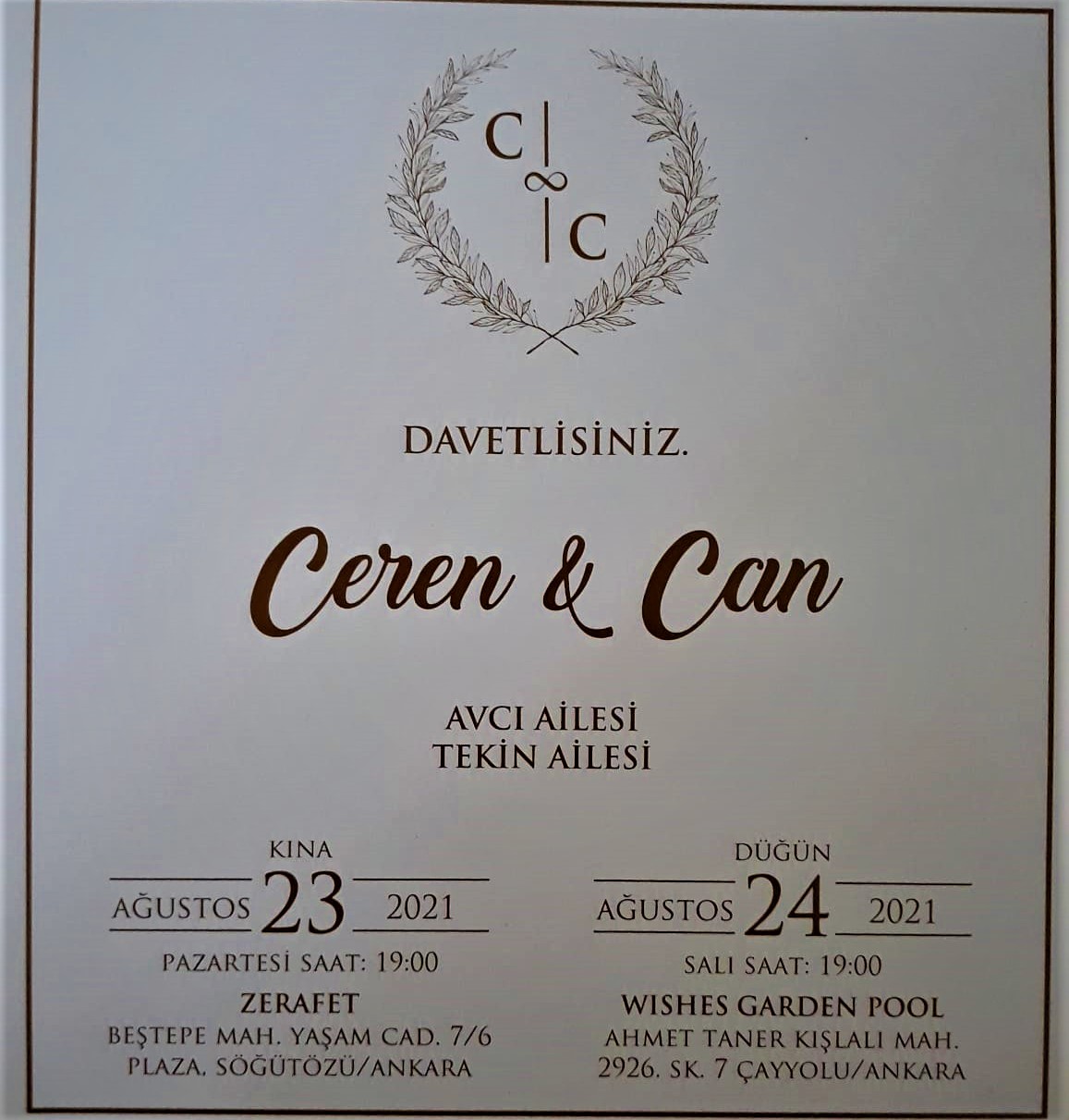 Birlikteliğimizin sonsuza kadar sürmesi umut ve dileği ile ortak yaşama adım attığımız bu günde sizlerle birlikte olmaktan mutluluk duyacağız.09 Ağustos 2021