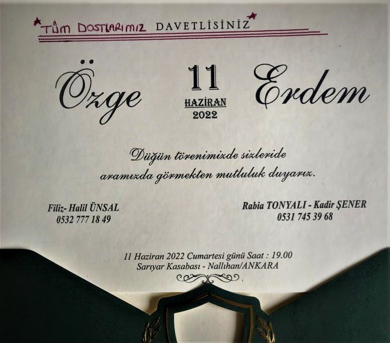 SARIYAR BELEDİYE BAŞKANLARIMIZDAN HALİL ÜNSAL-FİLİZ ÜNSAL ÇİFTİN SEVGİLİ KIZLARI ÖZGE ÜNSAL İLE ERDEM ŞENER'İN DÜĞÜNÜNE TÜM DOSTLARI BEKLERİZ.