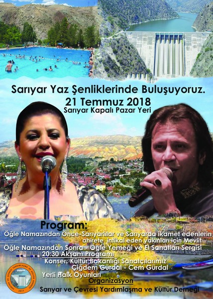 Bizlere bu büyük ses sanatçılarımızı 21 Temmuz 2018 Cumartesi günü yaz şenliklerinde Sarıyar'ımızla buluşturacak olan Sarıyar Ve Çevresi Yardımlaşma Ve Kültür Derneği -Sarder'imize teşekkür ediyoruz.