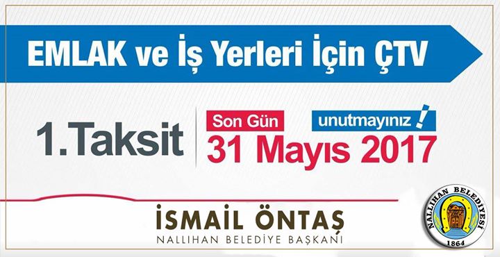 Nallıhan Belediyesi Mali Hizmetler Müdürü Ruhiye Çetinkaya konuyla ilgili yaptığı açıklamada “Nallıhan Belediyesi sınırları içinde emlak sahibi olan vatandaşlarımızın Emlak, İşyeri sahiplerinin Çevre Temizlik Vergisi 1. Taksiti Nallıhan Belediyesi Mali Hizmetler Müdürlüğü veznelerinden ve www.nallihan.bel.tr adresine girerek e-belediye sisteminden vergilerini kolaylıkla yatırabileceği gibi 226712 numaralı posta çeki hesabından ve Ziraat Bankası Nallıhan Şubesi TR57 0001 0000 1003 1581 5350 02 IBAN numaralı banka hesabımıza MASRAFSIZ ödeme imkanına da sahiptir. Ayrıca Vatandaşlarımız Kredi Kartı ile de borçlarını ödeyebilirler.” dedi.